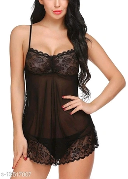 Women's Self-Design Net Babydoll Name: Women's Self-Design Net Babydoll Fabric: Net Sleeve Length: Sleeveless Pattern: Self-Design Multipack: 1 Sizes: S, M, L, XL, Free Size (Bust Size: 30 in, Length Size: 30 in) Country of Origin: India