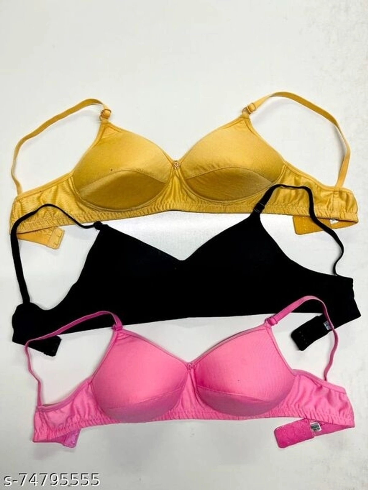 Women's Soft Padded Bra Combo (Multicolor ,Pack of 3) Name: Women's Soft Padded Bra Combo (Multicolor ,Pack of 3) Fabric: Cotton Blend Print or Pattern Type: Solid Padding: Padded Type: Everyday Bra Wiring: Non Wired Seam Style: Seamed Multipack: 3 Add On: Hooks Sizes: 34B (Underbust Size: 32 in, Overbust Size: 36 in) 32B (Underbust Size: 30 in, Overbust Size: 34 in) 30B (Underbust Size: 28 in, Overbust Size: 32 in) 40B (Underbust Size: 38 in, Overbust Size: 42 in) 28B (Underbust Size: 26 in, Overbust Size: 30 in) 38B (Underbust Size: 36 in, Overbust Size: 40 in) 36B (Underbust Size: 34 in, Overbust Size: 38 in) It's not only a bra, it is the love from a Boy friend, a husband and a father ;Breathable and soft fabric,naked feeling Feel and look great in a superior comfort bra for women of all shapes and sizes .Almost like you are not wearing anything at all .Also works perfect as a post surgical bra.