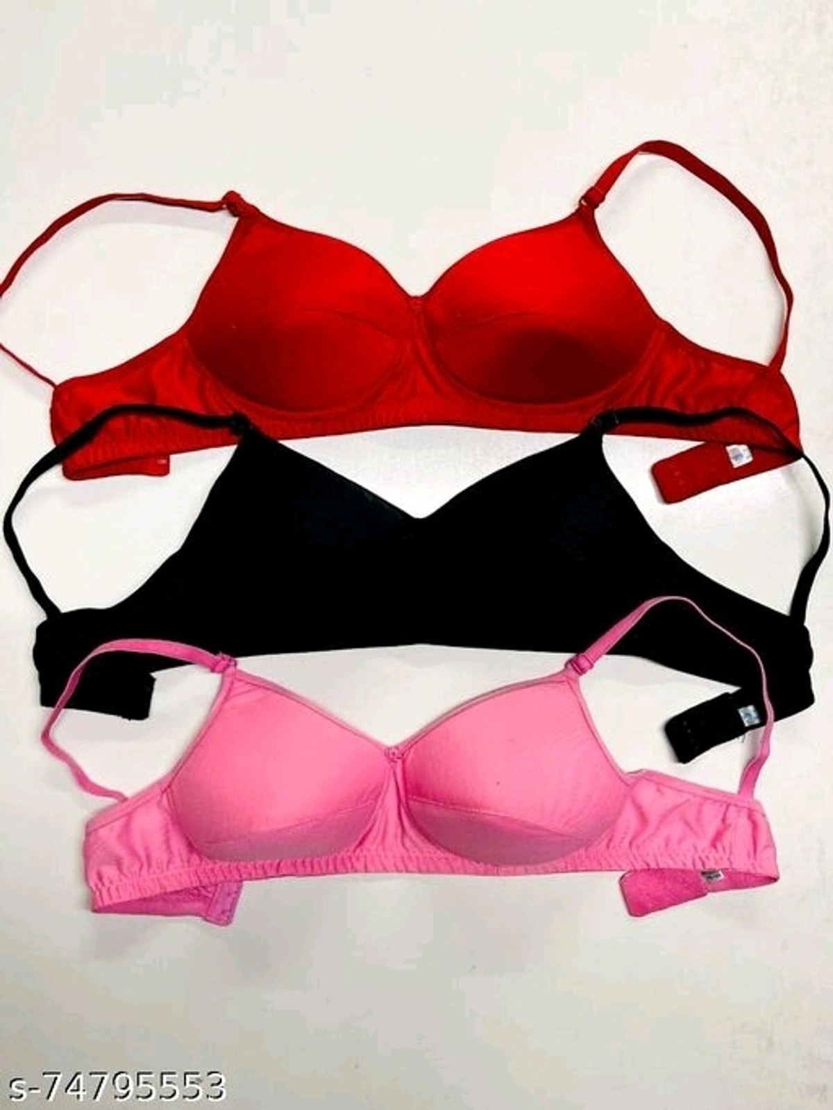 Women's Soft Padded Bra Combo (Multicolor ,Pack of 3) Name: Women's Soft Padded Bra Combo (Multicolor ,Pack of 3) Fabric: Cotton Blend Print or Pattern Type: Solid Padding: Padded Type: Everyday Bra Wiring: Non Wired Seam Style: Seamed Multipack: 3 Add On: Hooks Sizes: 34B (Underbust Size: 32 in, Overbust Size: 36 in) 32B (Underbust Size: 30 in, Overbust Size: 34 in) 30B (Underbust Size: 28 in, Overbust Size: 32 in) 40B (Underbust Size: 38 in, Overbust Size: 42 in) 28B (Underbust Size: 26 in, Overbust Size: 30 in) 38B (Underbust Size: 36 in, Overbust Size: 40 in) 36B (Underbust Size: 34 in, Overbust Size: 38 in) It's not only a bra, it is the love from a Boy friend, a husband and a father ;Breathable and soft fabric,naked feeling Feel and look great in a superior comfort bra for women of all shapes and sizes .Almost like you are not wearing anything at all .Also works perfect as a post surgical bra.
