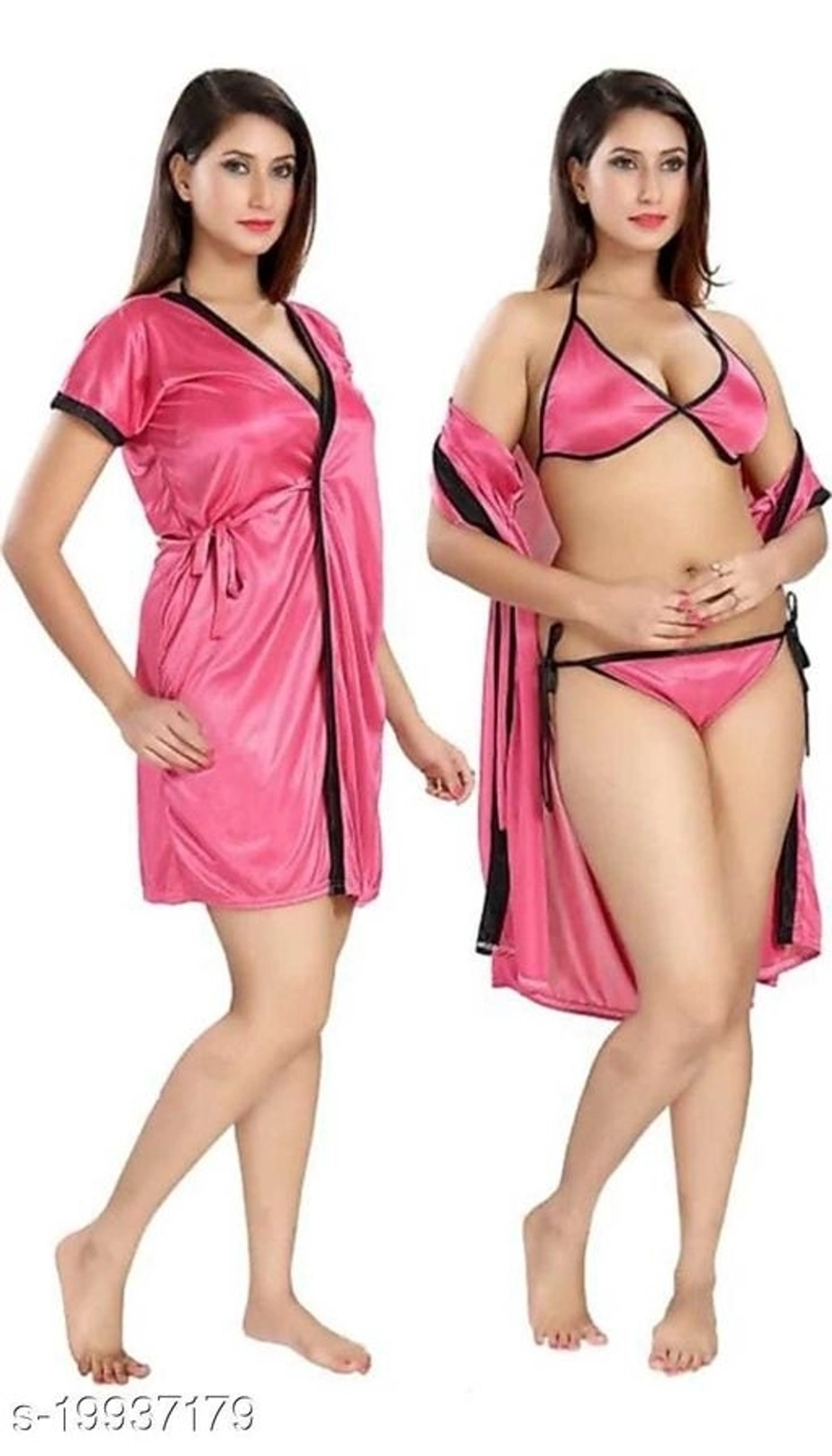 Women's Solid Satin Babydoll Name: Women's Solid Satin Babydoll Fabric: Satin Sleeve Length: Short Sleeves Pattern: Solid Multipack: 3 Sizes: Free Size (Bust Size: 40 in, Length Size: 34 in) Country of Origin: India