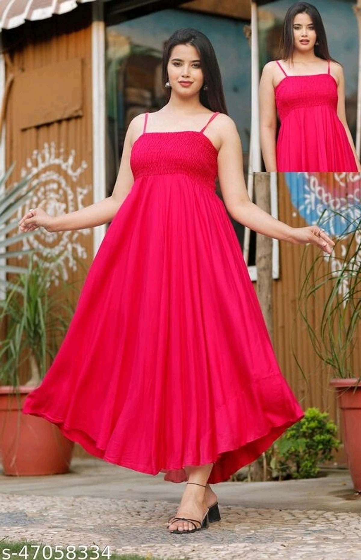 Zamaisha designed Extremely Stylish Comfortable Demanding Rayon Dress Name: Zamaisha designed Extremely Stylish Comfortable Demanding Rayon Dress Fabric: Rayon Sleeve Length: Sleeveless Pattern: Embellished Multipack: 1 Sizes: S (Bust Size: 36 in, Length Size: 50 in) XL (Bust Size: 42 in, Length Size: 50 in) XS (Bust Size: 34 in, Length Size: 50 in) L (Bust Size: 40 in, Length Size: 50 in) M (Bust Size: 38 in, Length Size: 50 in) XXL (Bust Size: 44 in, Length Size: 50 in) It has 1 piece of rayon dress designed for the ladies who want to look stylish and feel comfortable at the same time. The dress is sleeveless and can be considered as Maxi. Country of Origin: India free and fast delivery return policy 6 days