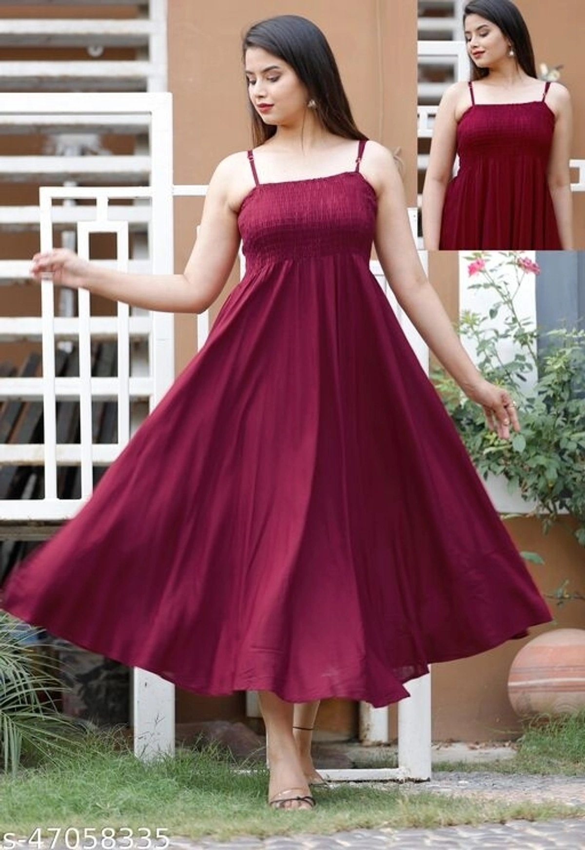Zamaisha designed Extremely Stylish Comfortable Demanding Rayon Dress Name: Zamaisha designed Extremely Stylish Comfortable Demanding Rayon Dress Fabric: Rayon Sleeve Length: Sleeveless Pattern: Embellished Multipack: 1 Sizes: S (Bust Size: 36 in, Length Size: 50 in) XL (Bust Size: 42 in, Length Size: 50 in) XS (Bust Size: 34 in, Length Size: 50 in) L (Bust Size: 40 in, Length Size: 50 in) M (Bust Size: 38 in, Length Size: 50 in) XXL (Bust Size: 44 in, Length Size: 50 in) It has 1 piece of rayon dress designed for the ladies who want to look stylish and feel comfortable at the same time. The dress is sleeveless and can be considered as Maxi. Country of Origin: India free and fast delivery return policy 6 days